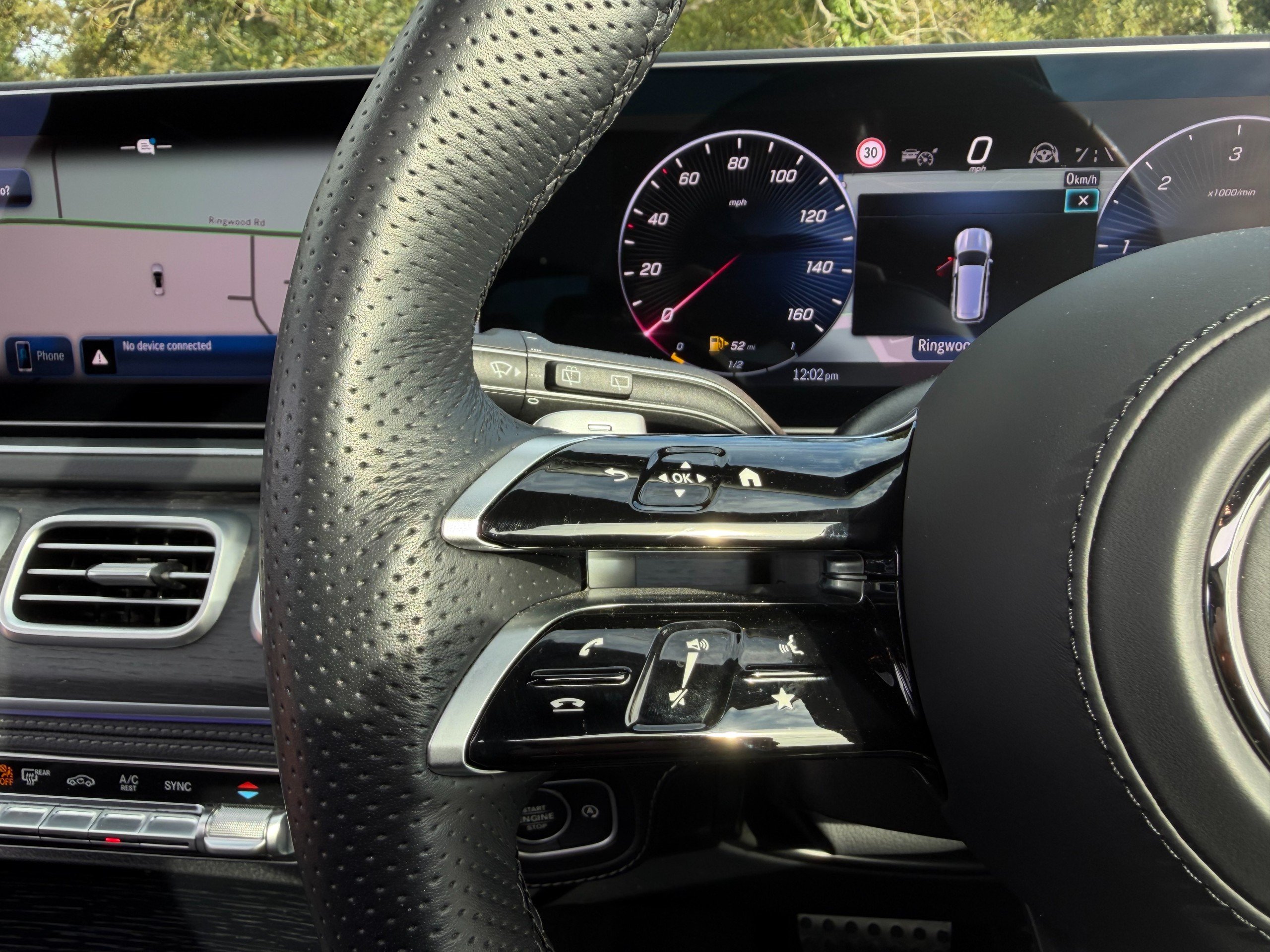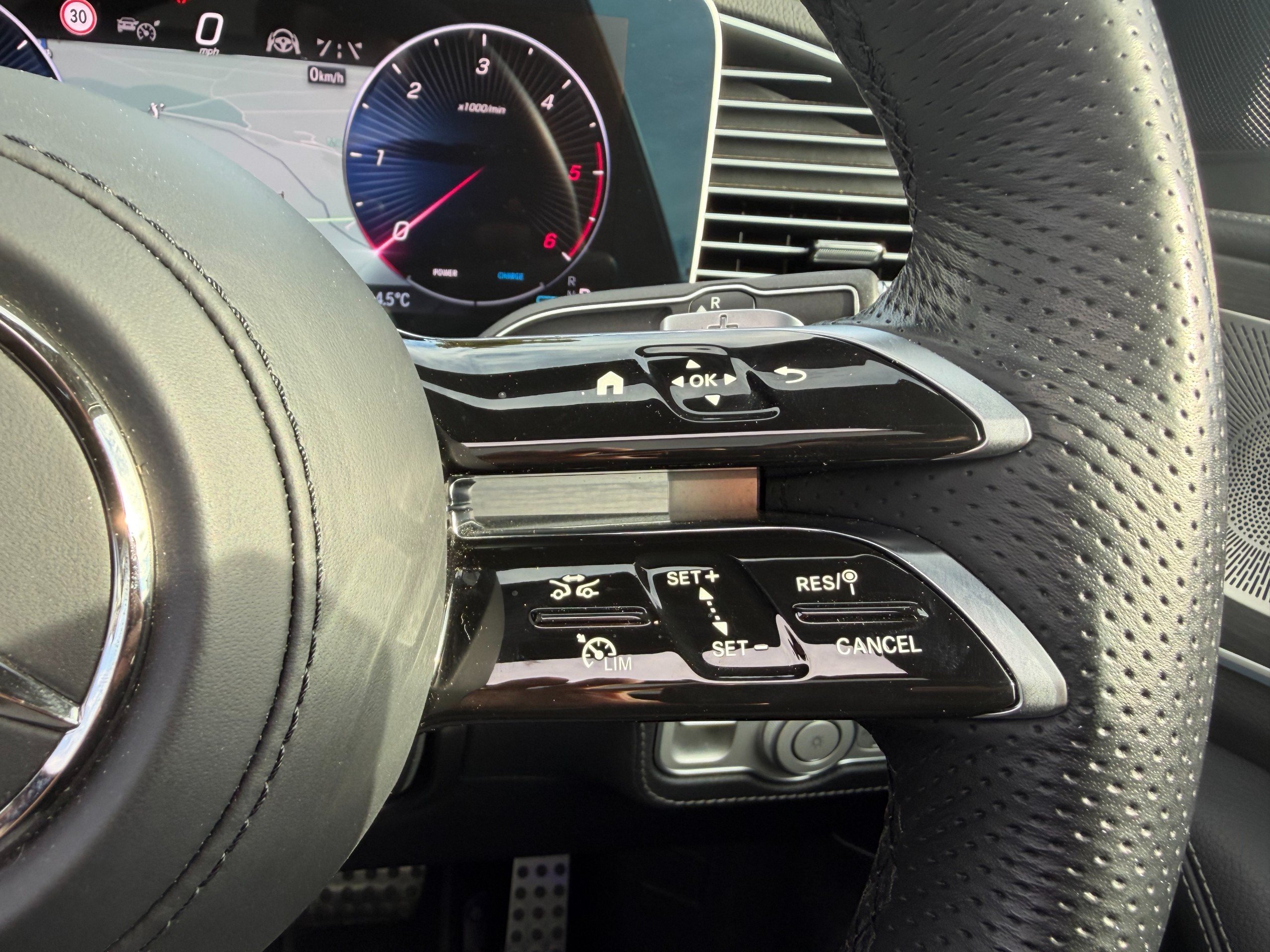 - Steering Wheel - 3-Twin-Spoke Multifunction Sports Steering Wheel in Nappa Leather Black with Flattened Bottom Section Perforated Grip Area with Touch Control Buttons