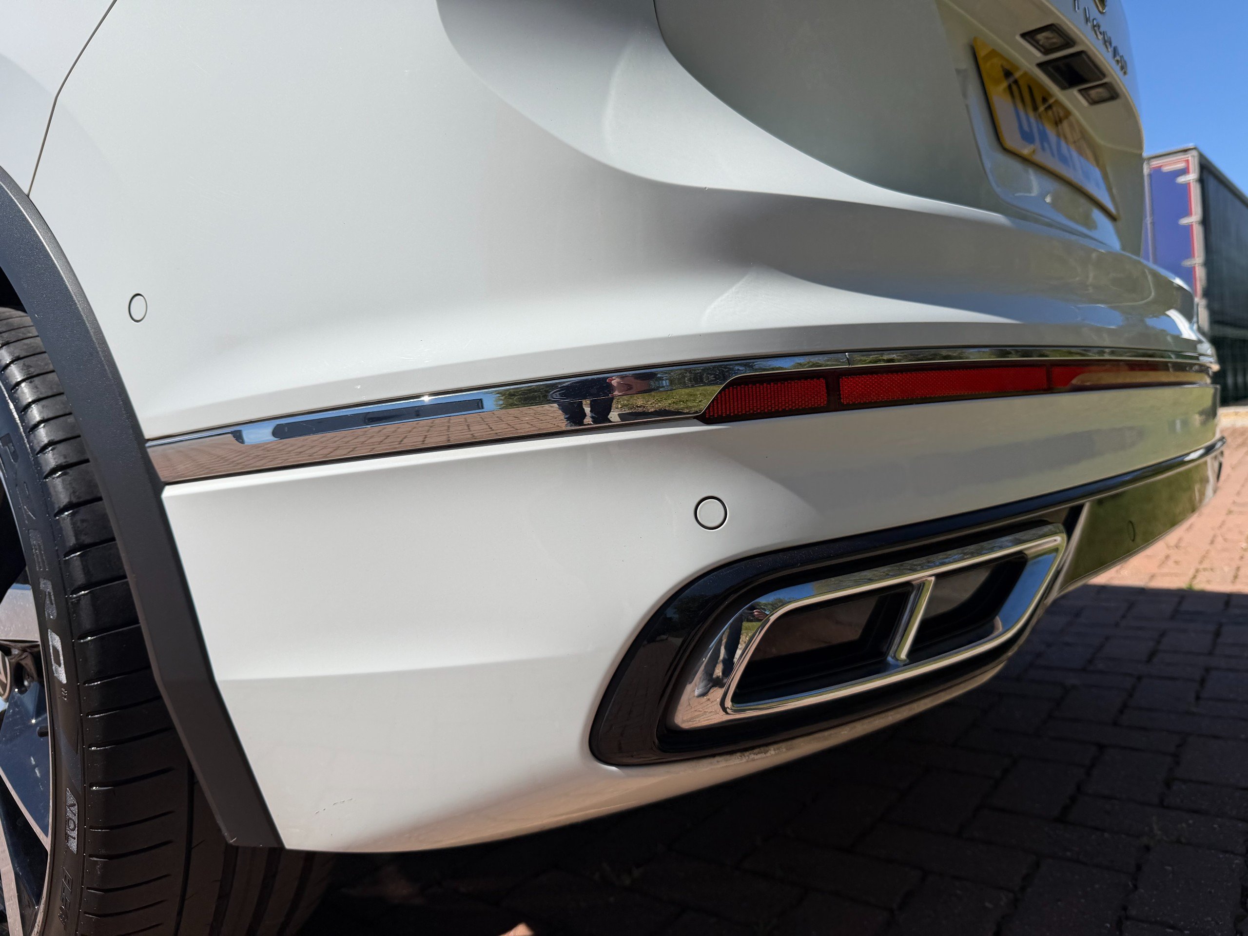 - Chrome Trim - Twin Trapezoid Styling Elements on Lower Bumper - Left and Right